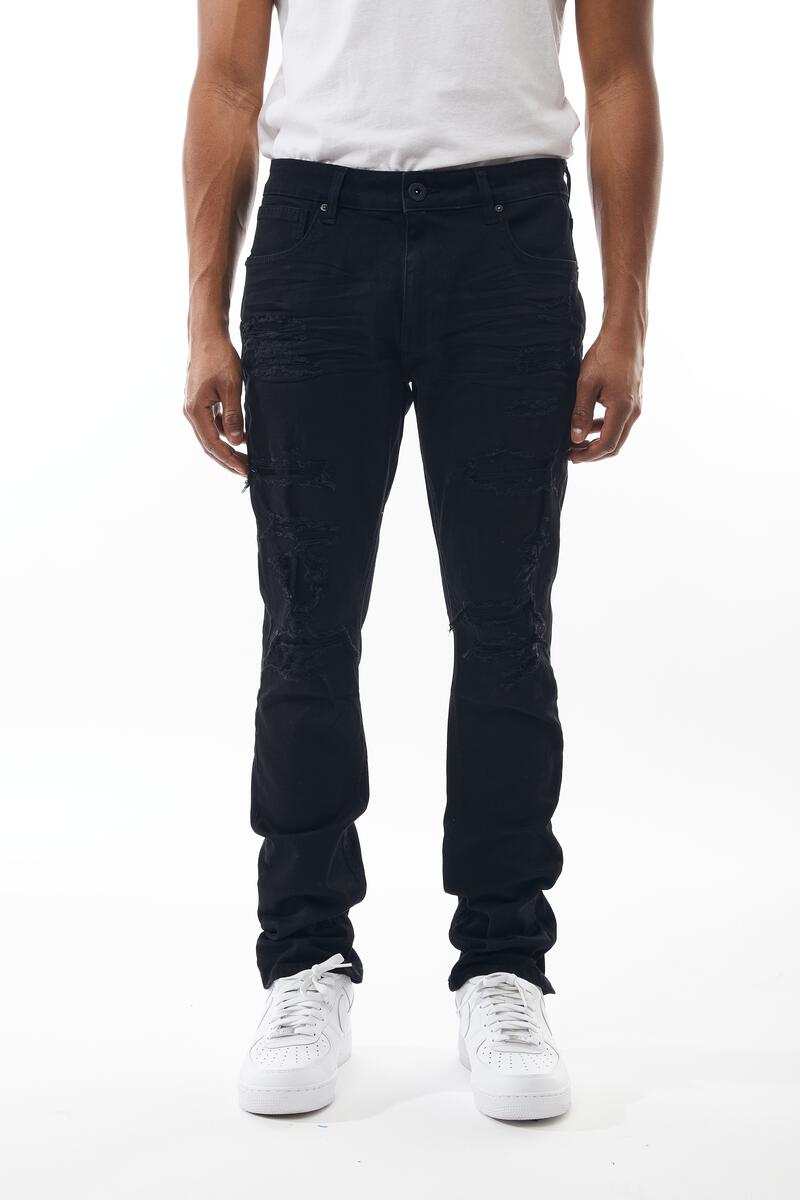 Vaqueros de hombre con roturas y remiendos MS-80326 NEGRO AZABACHE