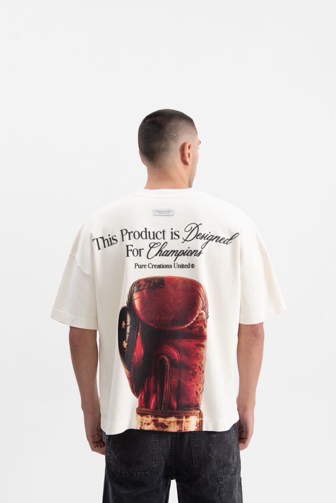 Cream T-shirt featuring our signature box fit design for a contemporary silhouette. Crafted from premium 100% cotton with a substantial 350 gram fabric weight, this heavyweight tee delivers exceptional durability and structure while maintaining breathability. The PURE Knockout collection offers superior comfort with minimal shrinkage and excellent color retention through multiple washes. Ideal for layering or as a standalone statement piece for elevated casual styling.
