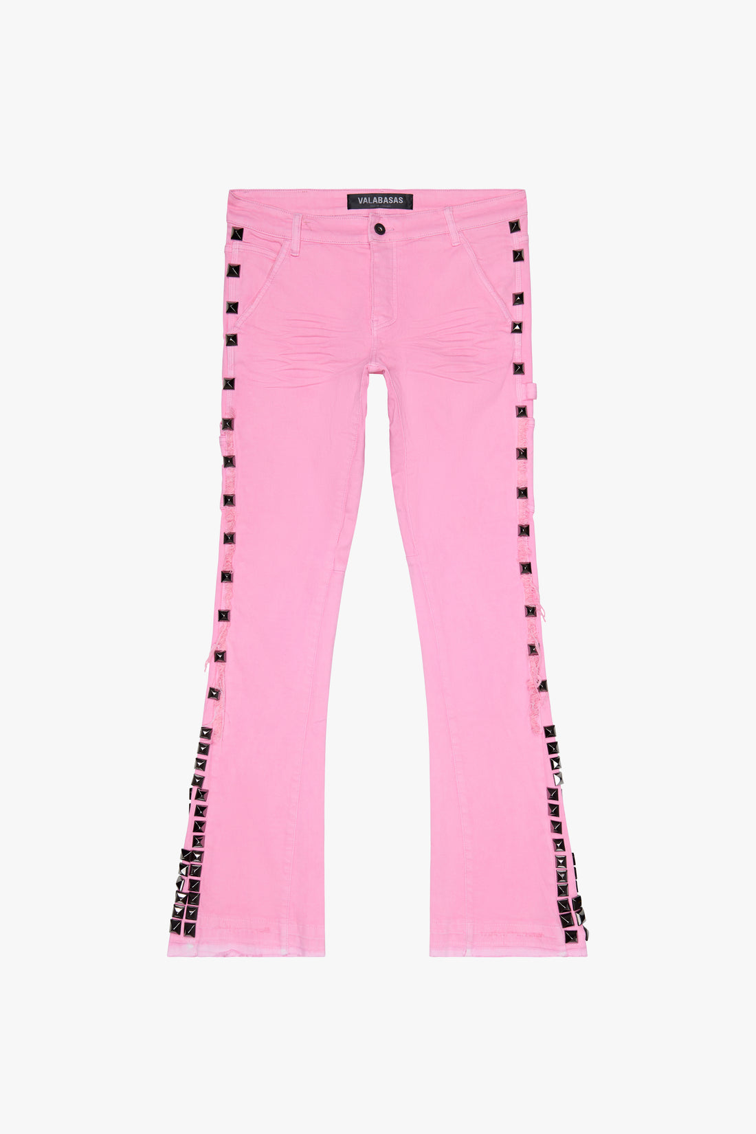 Haga una declaración audaz con el Glaz Stacked Denim – Rosa : colores vibrantes se fusionan con un diseño urbano vanguardista. Con un llamativo tono rosa, estos jeans apilados se realzan con brillantes tachuelas plateadas que recorren las costuras laterales, dándoles un toque rebelde. La silueta apilada y el sutil efecto de bigotes brindan un ajuste favorecedor y alargado, mientras que los dobladillos sin rematar rematan el look con un toque fresco y desenfadado.