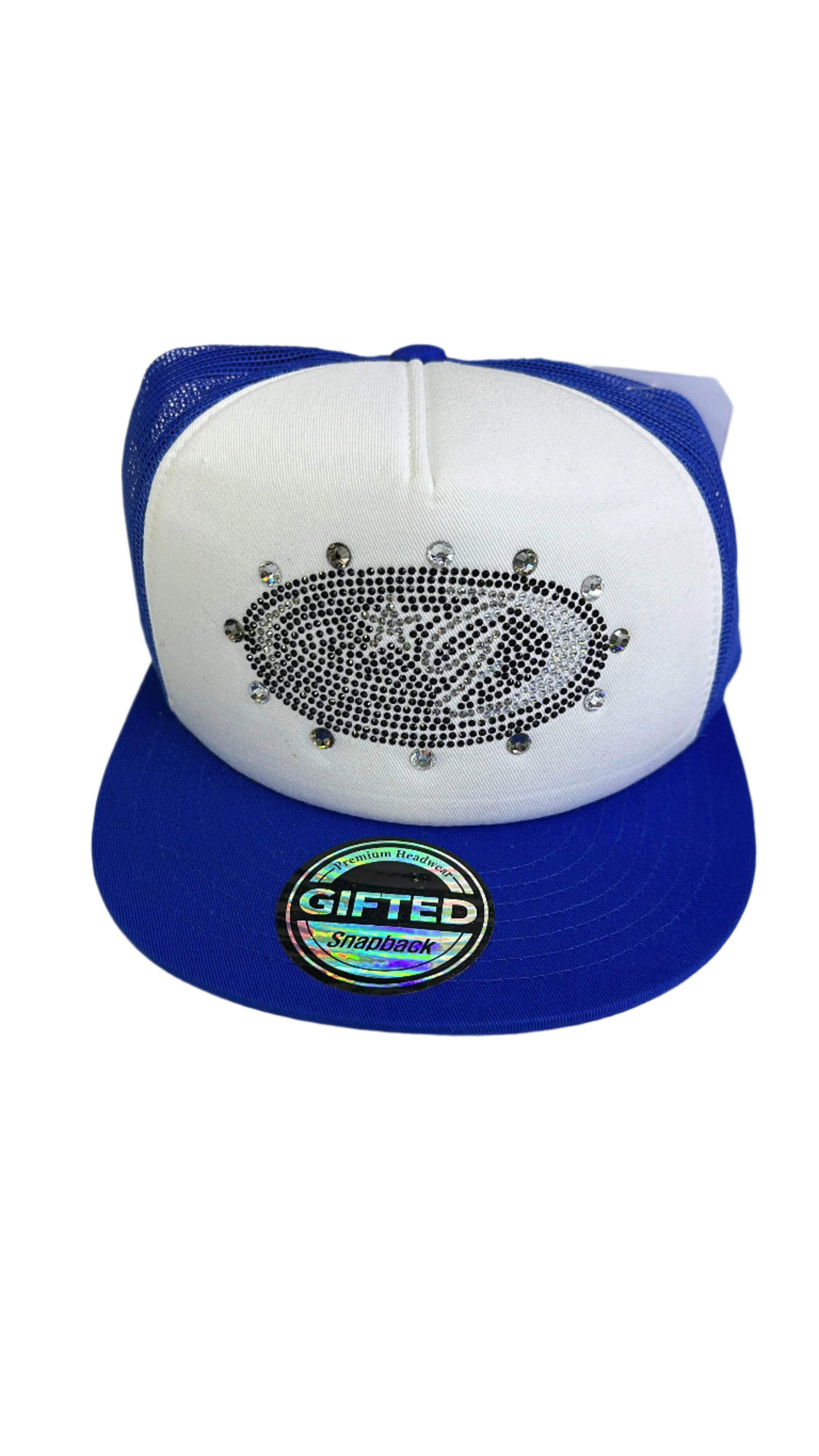 Elevate your style with the Gifted Rhinestone Hat in a striking blue, white, and black color combination. Expertly crafted, this hat features sparkling rhinestone accents that add a touch of sophistication and glamour to any outfit. Its durable construction ensures long-lasting wear, while the adjustable fit provides comfort for all-day use. Perfect for those who appreciate refined accessories, this hat seamlessly blends fashion and function, making it an essential addition to your wardrobe. Whether for casual outings or special occasions, it delivers a polished look with effortless ease.
