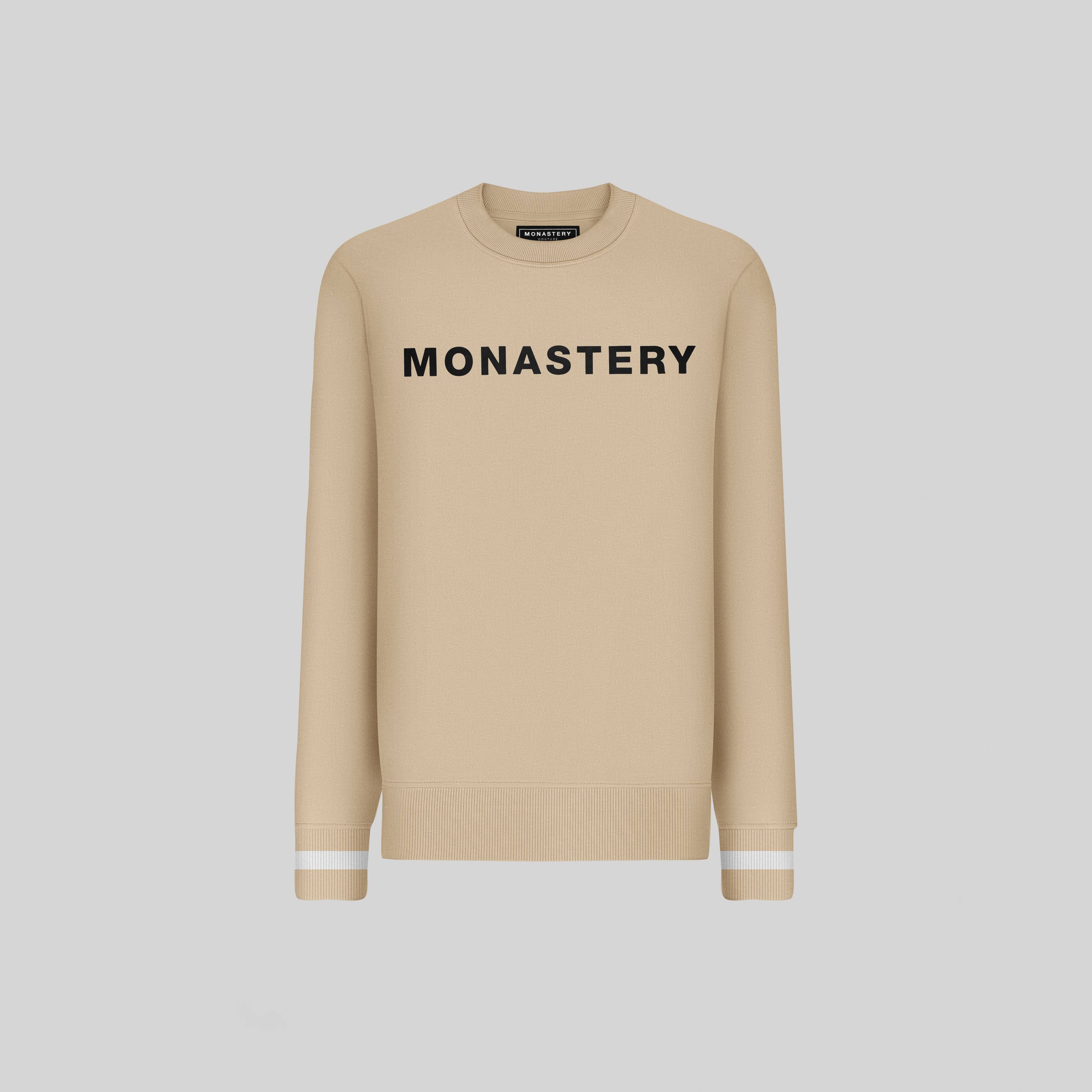 Our Sweatshirt Mileto, features the text Monastery embossed plastisol to the center of the chest in contrast to game with cuffs. Textile base is a 100% Peruvian cotton fabric, this knit fabric is soft and comfortable texture, in addition, it is made in a regular silhouette that enhances the male figure.