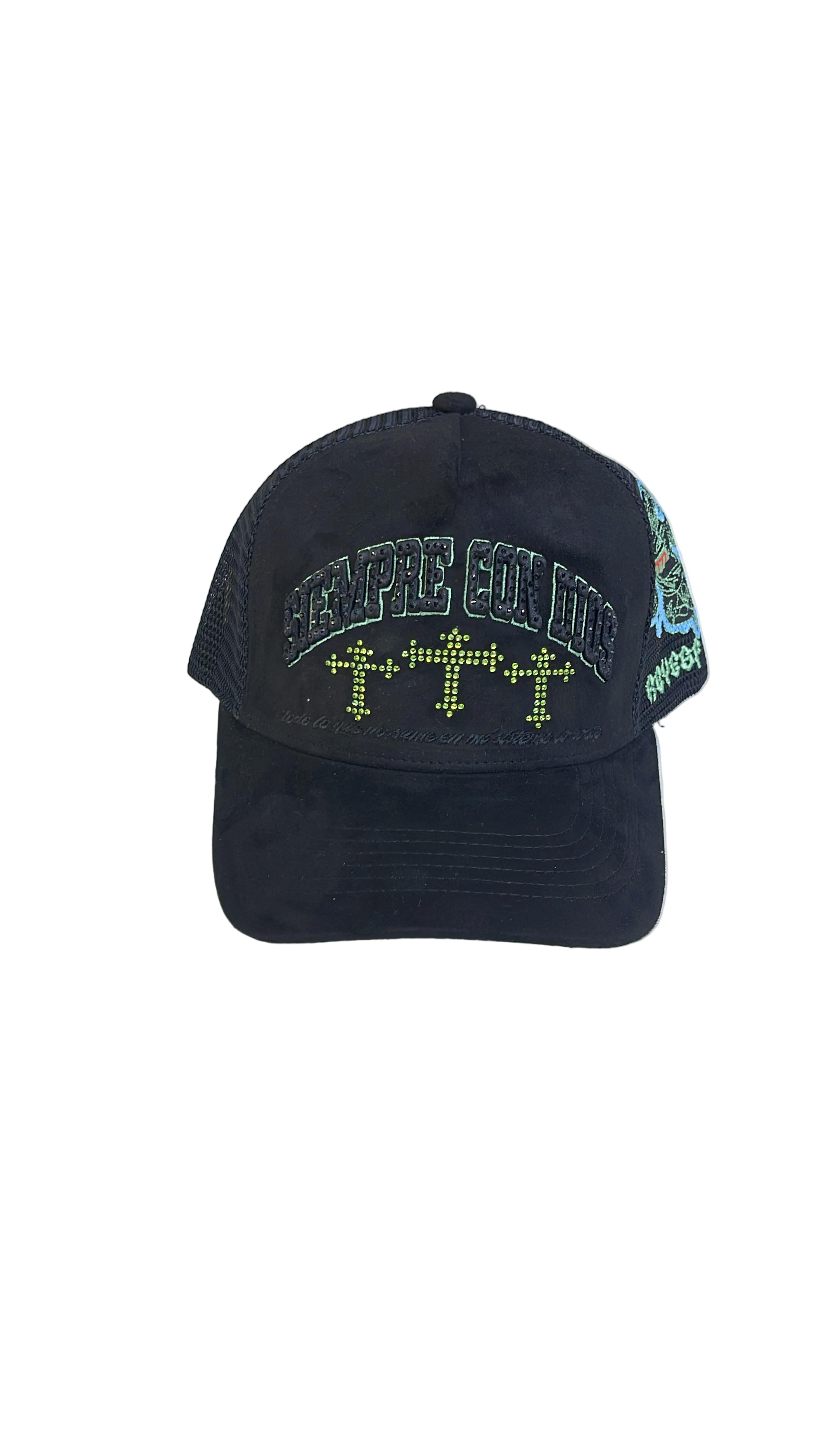 The REYESF HAT SIEMPRE CON DIOS BLACK/GREEN CRUZ V22 combines style with meaningful symbolism. Crafted with premium materials, this hat features a striking black base complemented by a vivid green cross, representing faith and resilience. Its durable construction ensures long-lasting wear, while the adjustable fit offers comfort for daily use. Perfect for those who want to express their spiritual commitment with confidence, this hat blends contemporary fashion with a timeless message. Ideal for casual outings or as a thoughtful gift, it serves as a constant reminder to carry faith wherever you go.