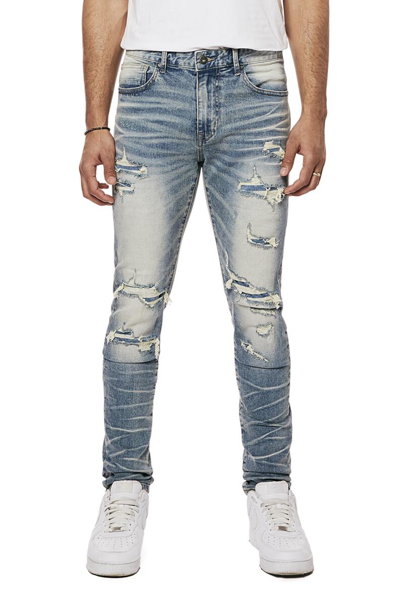 Elevate your style game with these ripped and repaired color jeans! The trendy and distressed design adds a touch of edge to any outfit. Plus, the slim taper fit will flatter your silhouette and keep you looking effortlessly cool. Perfect for any fashion-forward individual who wants to make a statement. Are you ready to turn heads and stand out in these MALIBU BLUE colored jeans?