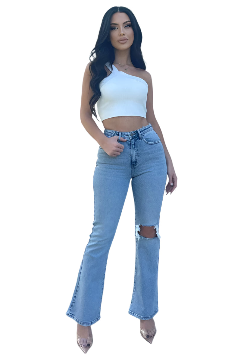 Flare Jeans DG7101FL-Light 11" Rise 34" Inseam Comfort Stretch 5 Pockets Button And Zipper Closure Distressed Show More Fabric Contents 99% Cotton 1% Spandex