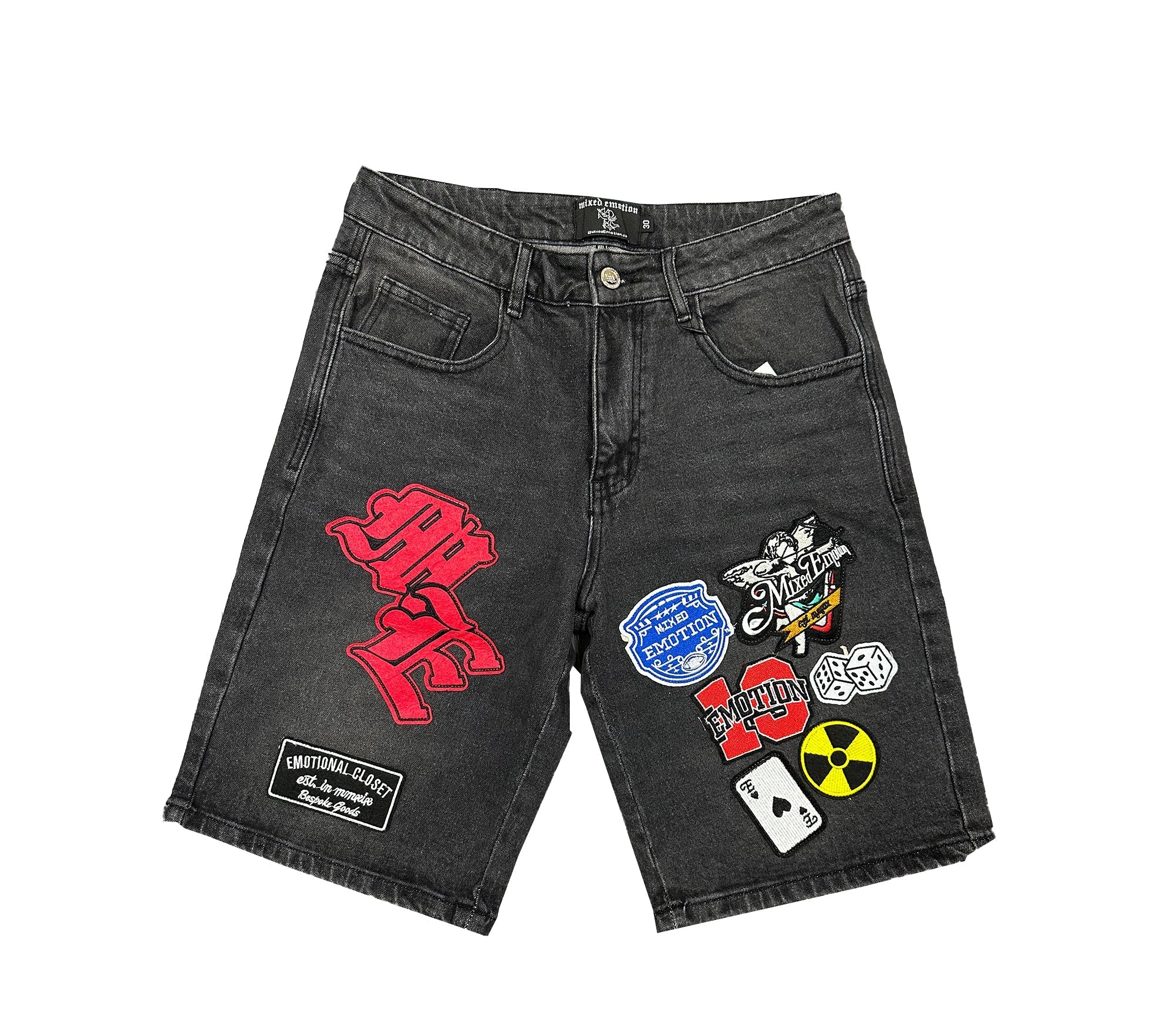 MIXED EMOTION Danger' Patch Denim Shorts deliver bold streetwear energy with a statement-making aesthetic. Crafted from premium denim, these shorts feature the iconic "Danger" patch detailing that defines the MIXED EMOTION collection—a signature element that elevates your casual rotation. The structured fit and quality construction ensure durability through seasons of wear, while the edgy patch work speaks to those who embrace dark-luxury streetwear. Perfect for layering with oversized tees or pairing with premium sneakers, these shorts bridge the gap between everyday comfort and editorial style. A versatile essential for collectors who demand both substance and visual impact in their wardrobe.