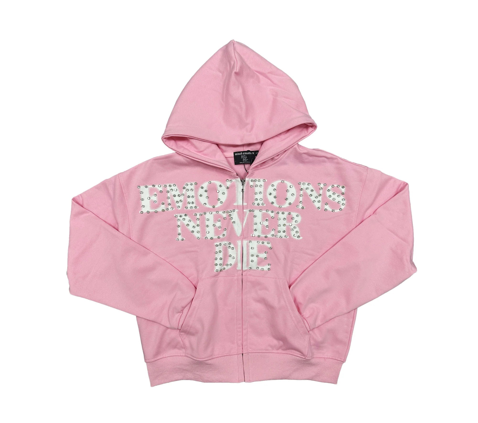 MIXED EMOTION Pink 'End' Hoodie channels raw emotion through bold design and premium construction. This statement piece features a striking pink colorway paired with the provocative 'End' graphic—a conversation starter that resonates with those who embrace contradiction and edge. Crafted from heavyweight cotton-blend fabric, it delivers superior comfort and durability for everyday wear or layering. The oversized silhouette offers modern streetwear appeal while maintaining a refined finish that elevates casual fits. Perfect for collectors who demand pieces that blend artistic vision with wearable luxury. Own the narrative.
